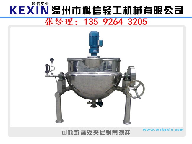 夾層鍋又名蒸汽鍋、蒸煮鍋、夾層蒸汽鍋。通常由鍋體和支腳組成。鍋體是由內(nèi)外球形鍋體組成的雙層結(jié)構(gòu)形式,中間夾層通入蒸汽加熱。有固定式、可傾式、攪拌式等樣式。夾層鍋具有受熱面積大、熱效率高、加熱均勻、液料沸騰時(shí)間短、加熱溫度容易控制、外型美觀、安裝容易、操作方便、安全可靠等特點(diǎn)。夾層鍋廣泛應(yīng)用于各類食品的加工,也可用于大型餐廳或食堂熬湯、燒菜、燉肉、熬粥等,是食品加工提高質(zhì)量、縮短時(shí)間、改善勞動(dòng)條件的良好設(shè)備。
